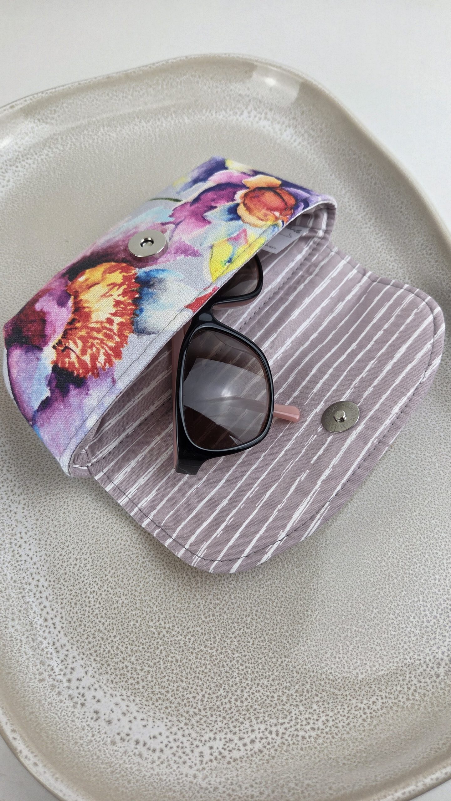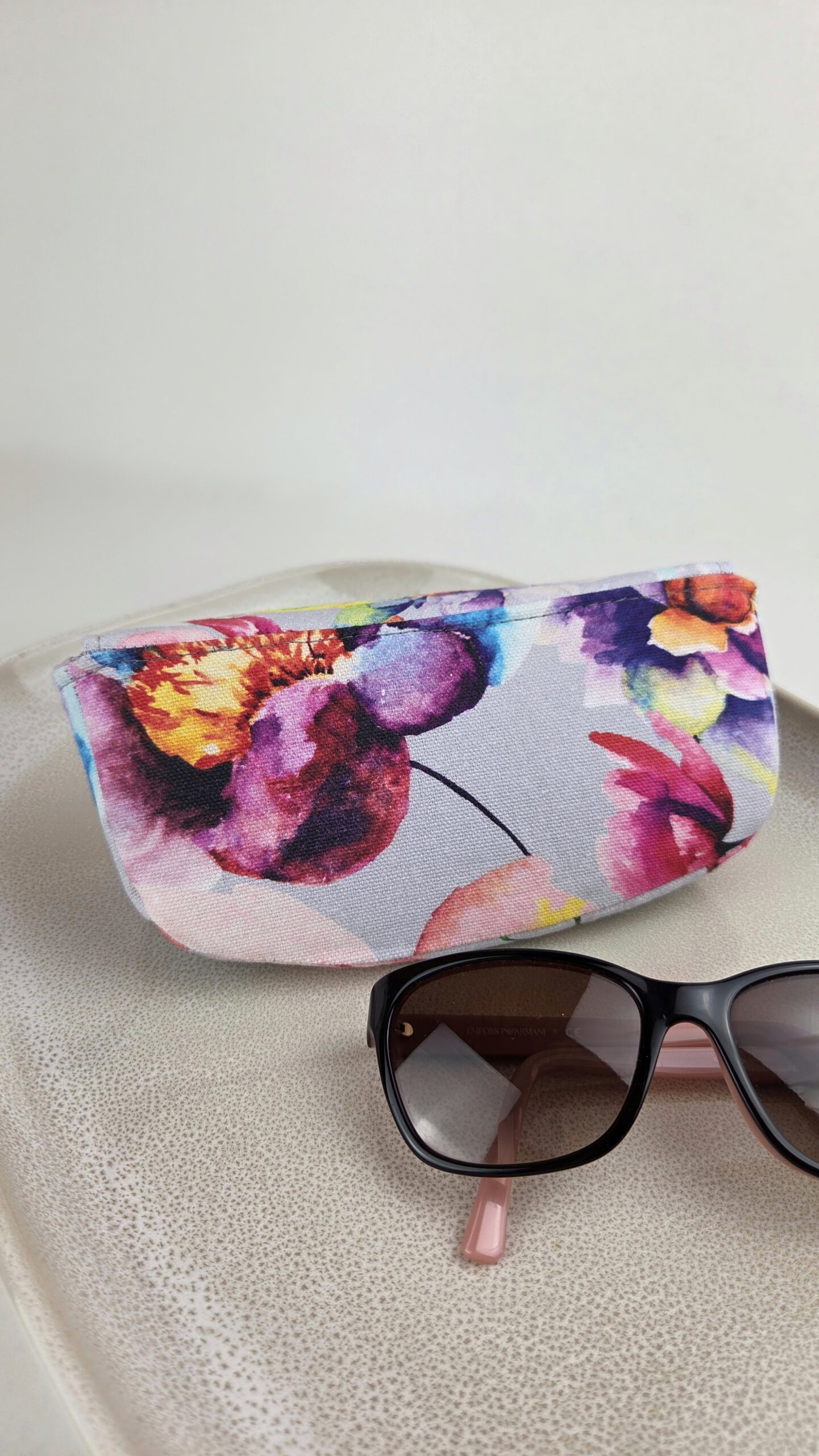 Ich bin FräuleinCalista – farbenfroh, lebendig und voller Energie. Mein Stoff aus robuster Baumwollwebware zeigt ein ausdrucksstarkes Aquarell-Blumenmuster in kräftigen Pink-, Violett- und Gelbtönen. Ich bin leicht, handlich und gleichzeitig stabil genug, um deine Brille sicher zu schützen. Mit mir trägst du die Leichtigkeit des Sommers immer bei dir – bunt, frei und unverwechselbar.