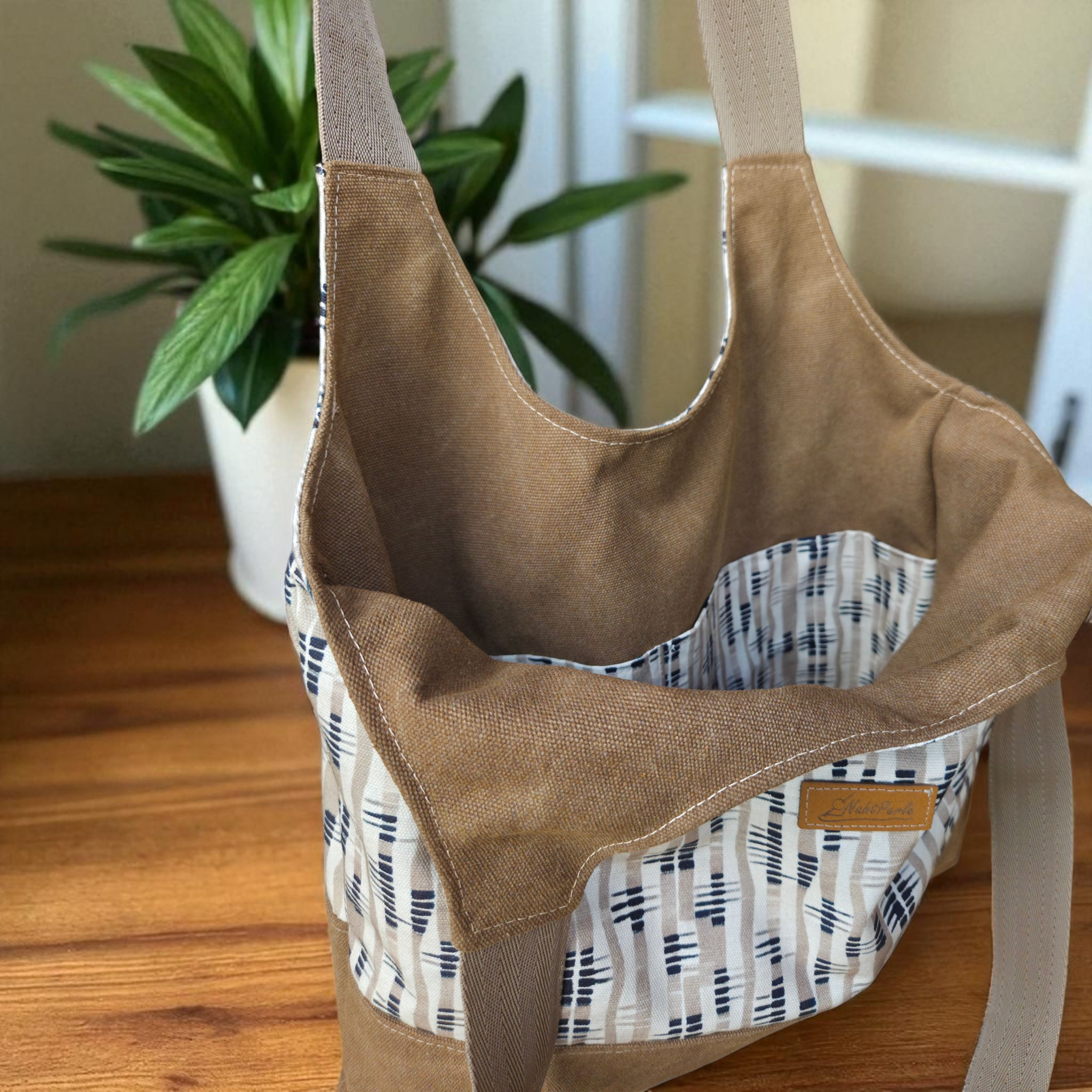 Ich bin FrauMalin, eine Tasche für alle, die Natürlichkeit und Funktionalität schätzen. Mein dezentes Muster in Creme, Beige und Dunkelblau verleiht mir einen ruhigen, klaren Look, während mein robuster Canvas-Stoff und die großzügigen Fächer dir im Alltag zur Seite stehen. Ob beim Einkaufen, beim Stadtbummel oder auf dem Weg zur Arbeit – ich trage alles, was dir wichtig ist, mit zurückhaltendem Charme und praktischer Eleganz.